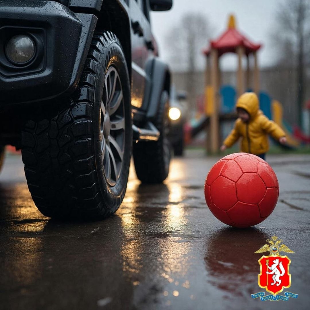 При выезде из арки, с парковки, из-за гаража — остановитесь, убедитесь, что нет детей.