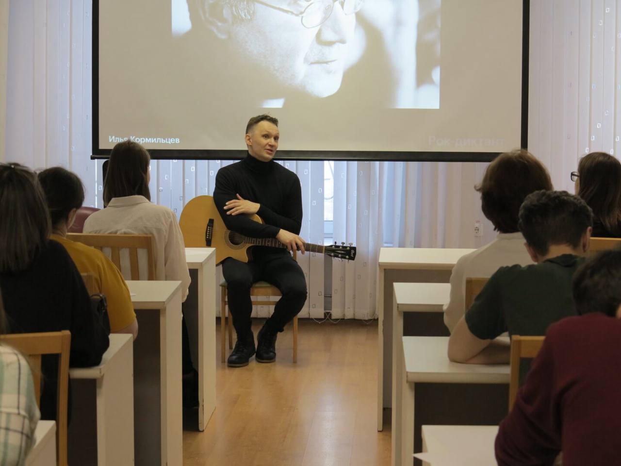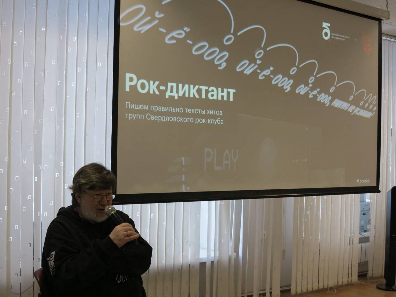 Участникам предложили проверить грамотность на текстах культовых свердловских групп, а также послушать воспоминания очевидца эпохи — писателя Евгения Касимова.