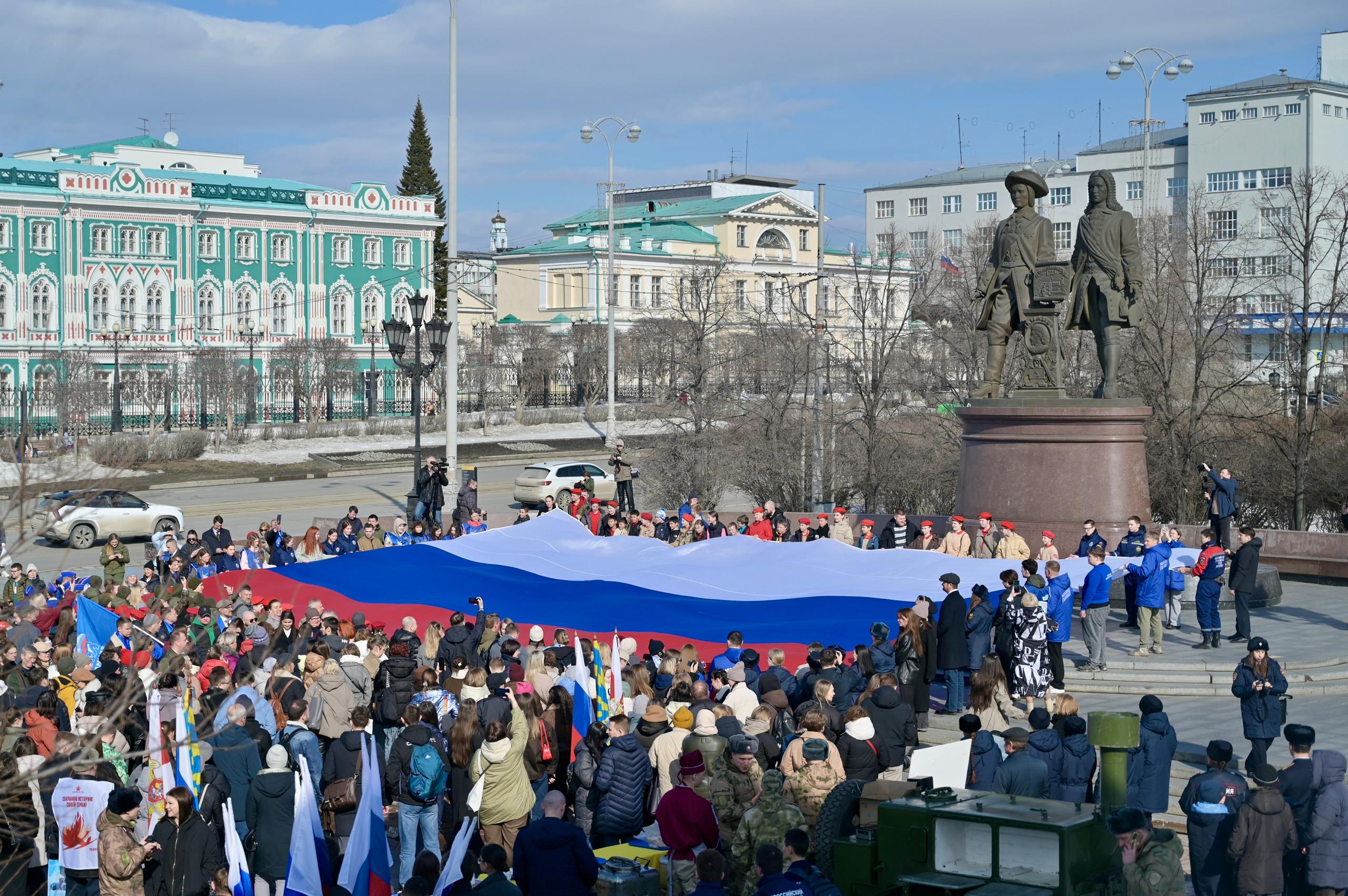 Ранее, в рамках празднования Дня воссоединения Крыма с Россией, в Историческом сквере Екатеринбурга прошел патриотический флешмоб, в ходе которого был развернут государственный флаг размером 6 на 9 метров. В акции приняли участие более 300 активистов молодежных, патриотических и добровольческих объединений, а также жители города.