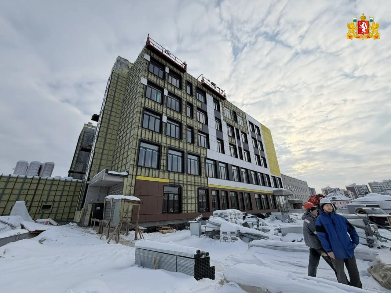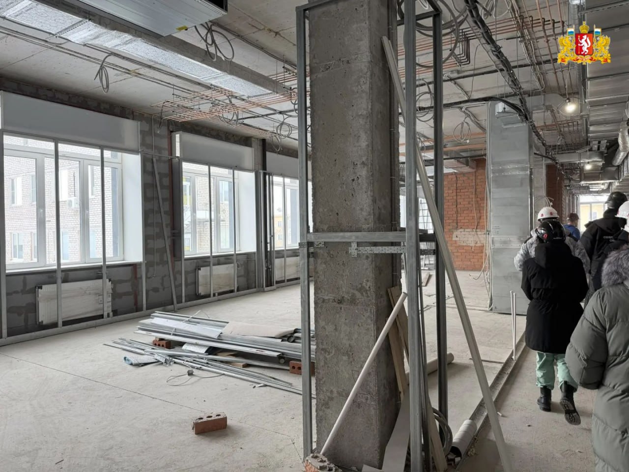 К середине марта готовы каркас здания, кровля, наружные и внутренние стены, газификационная станция и ряд других систем жизнеобеспечения. Выполнено подключение к наружным сетям теплоснабжения, водоснабжения и канализации. Готовность фасада составляет 82%. Монтаж внутренних инженерных сетей также близок к завершению.