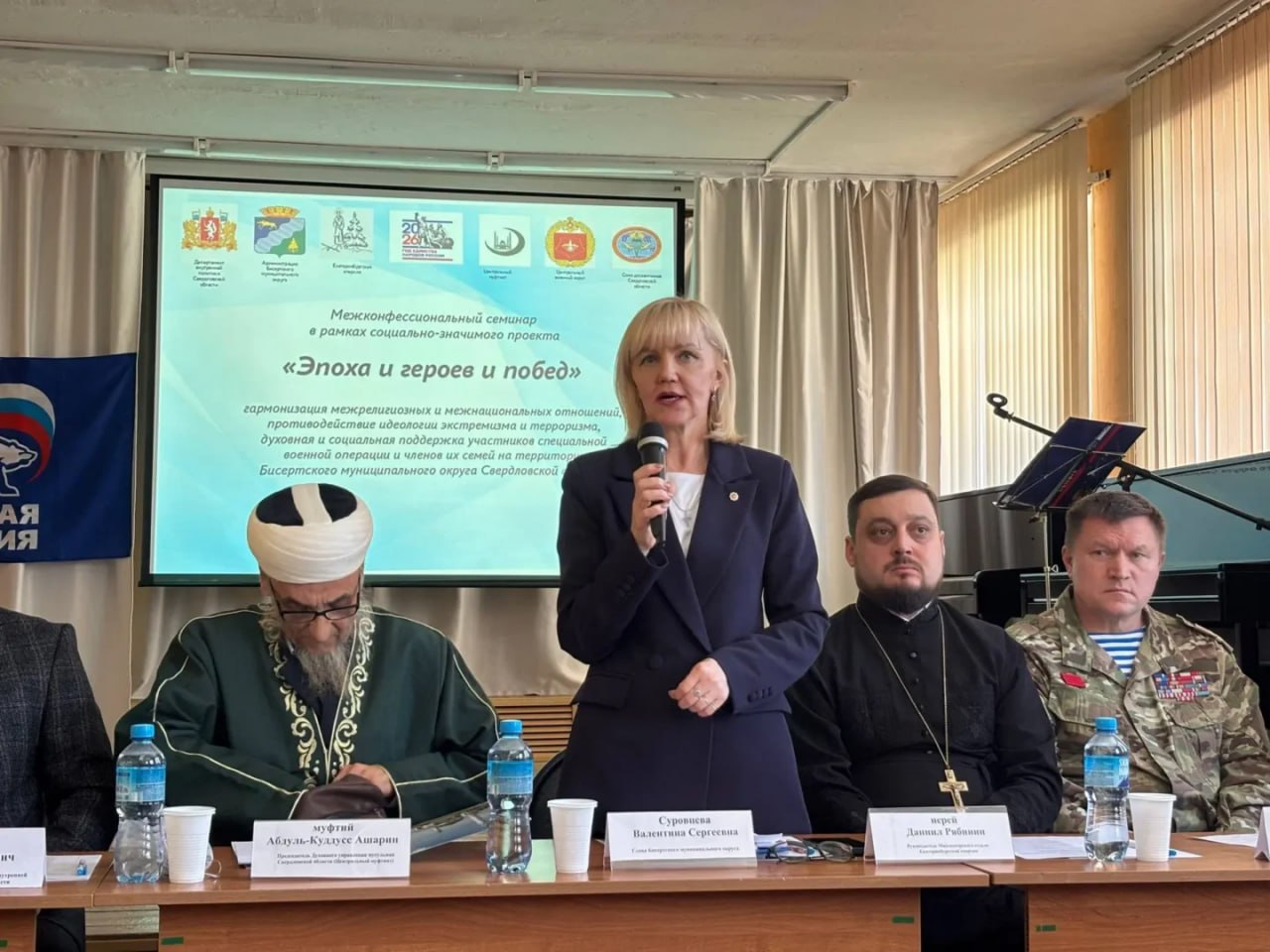 В Бисертском муниципальном округе прошел межконфессиональный семинар в продолжение социально значимого проекта «Эпоха героев и побед». Встреча объединила представителей власти, духовенства, общественных и ветеранских организаций, педагогов, волонтеров и жителей территории вокруг тем межрелигиозного согласия, поддержки участников специальной военной операции и их семей.