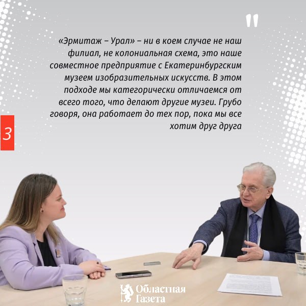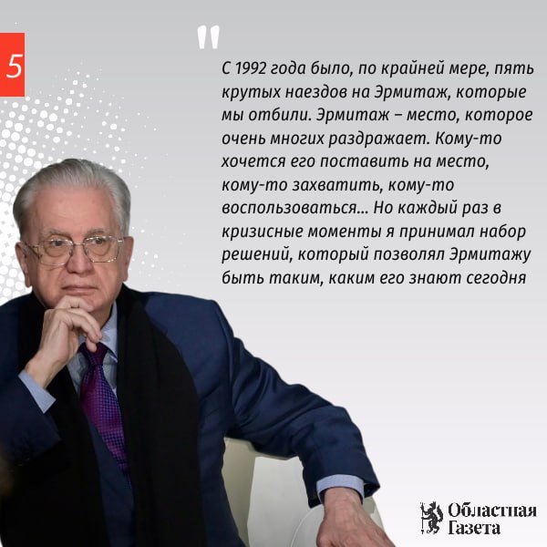 Он рассказал «Областной газете», почему система центров-спутников Эрмитажа далека от колониальной модели, как очертить границу между ИИ, цифрой и традиционным форматом и какие решения считает главными за почти 35 лет руководства самым большим музеем страны.