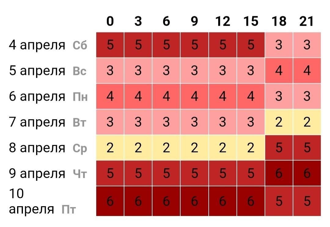По прогнозу, буря продлится с 5 по 11 апреля. Пик же придется на следующую пятницу, 10 апреля.
