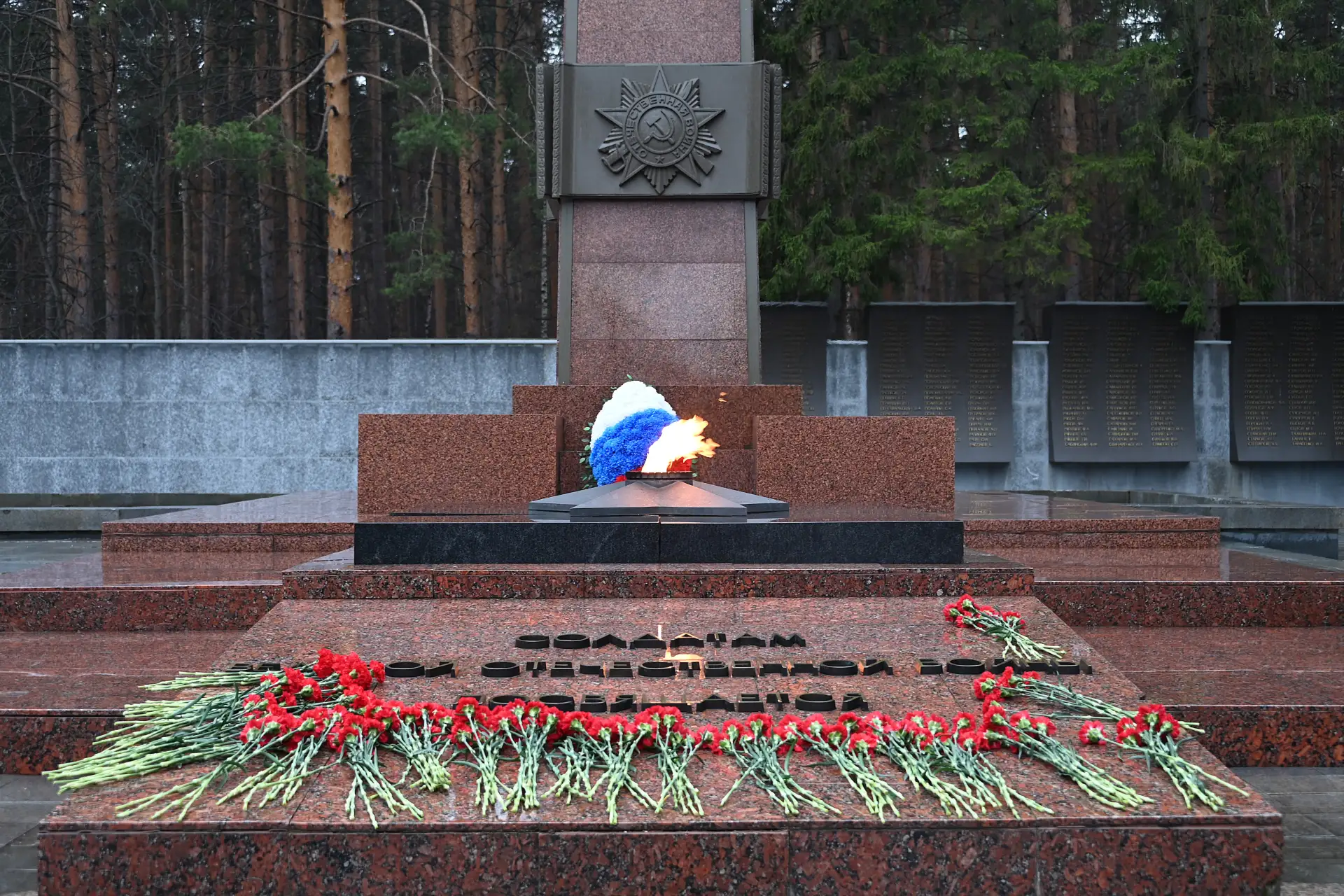 Дипломаты почтили память Героев Великой отечественной войны минутой молчания и возложили цветы к Вечному огню на Широкореченском военно-мемориальном комплексе.