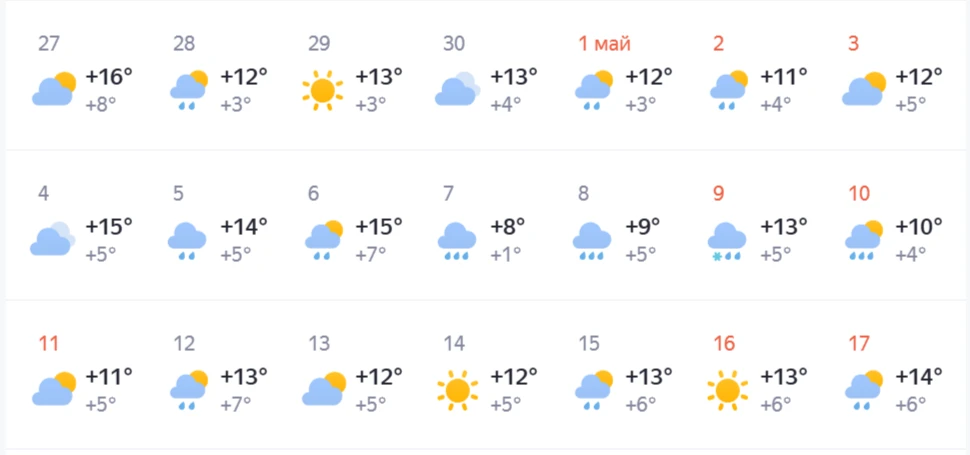 В майские праздники в Екатеринбурге обещают дожди