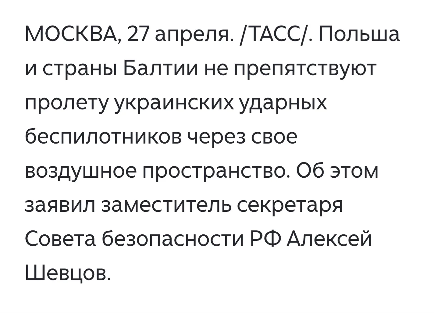 Дальше что? Надо ещё понимать, что беспилотник, пролетающий через Польшу в Россию, и беспилотник, который запускается с территории Польши - ничем не отличаются. Точка запуска не известна. То есть, по факту можно констатировать только то, что беспилотники летят из Польши и из Прибалтики. Запузены ли они с Укра ны, утверждать невозможно. Польша, Литва, Латвия и Эстония участвуют в агрессии против России. Констатируется, по сути, это. Дальше что? Пока не видно, чтобы это привело к каким-то реальным последствиям. Кстати, недавняя атака украинских беспилотников на Екатеринбург вообще заставляет посмотреть на ситуацию под другим углом. Известные прежде модели БПЛА технически не способны преодолеть расстояние от Украины до Урала. 2000 километров это больше их предельных возможностей. Применены новые типы БПЛА? По обломкам можно определить. Или точка запуска не на Украине? А где тогда? В Казахстане? Если так, то 7800 километров российско-казахстанской границы перестают быть безопасными. Что делать? Уверен, что главная щалача сейчас - победа на поле боя. Если конвенциональными средствами этого достичь трудно, значит, пора применять более мощные. Наблюдаю, как о применении ЯО обсуждают сегодня в СМИ, и обсуждают опять с точки зрения того, как можно "испугать" противника применением ядрёно-бомбы. Полнач ерунда! Это оружие придумывалось не для того, чтобы пугать, а для достижения конкретных целей, выполения конкретных задач. В частности, тактическое ЯО для прорыва линии фронта и уничтожения пунктов управления. Примение тактического ЯО позволит быстро и эффективно сломать хребет военной машины нынешнего киевского режима. И никого пугать не надо, достаточно просто победить. Тогда и налёты БПЛА прекратятся. Со всех сторон.