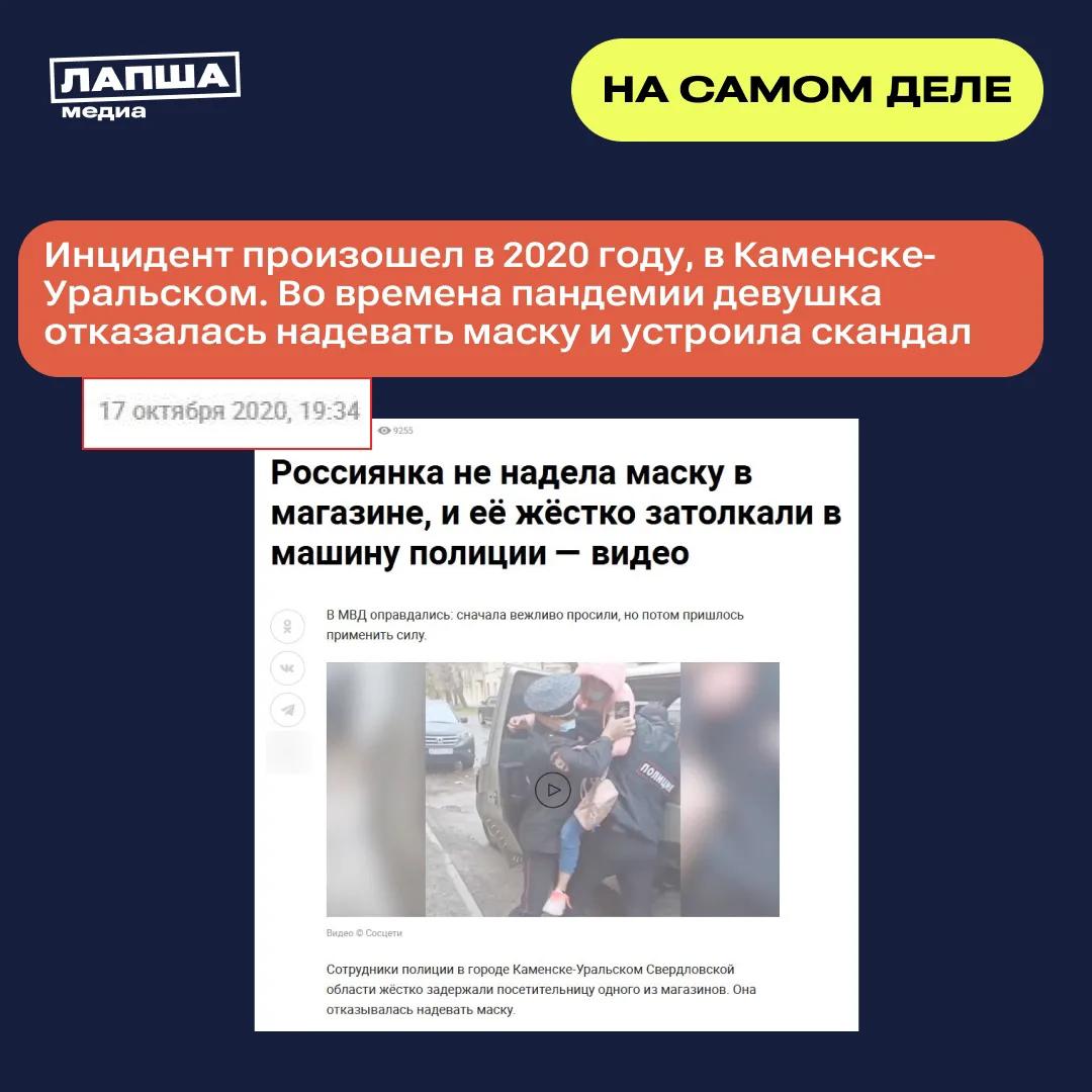 Видео, на которое ссылаются авторы, на самом деле снято в 2020 году в городе Каменск-Уральский Свердловской области. Женщина отказалась надеть медицинскую маску в магазине во времена пандемии и устроила скандал.