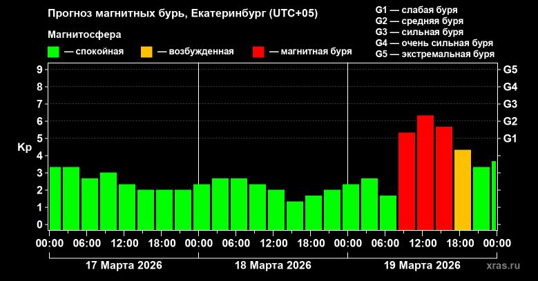 Судя по данным лаборатории солнечной астрономии ИКИ РАН, магнитная буря ожидается днем 19 марта. К вечеру она ослабнет.