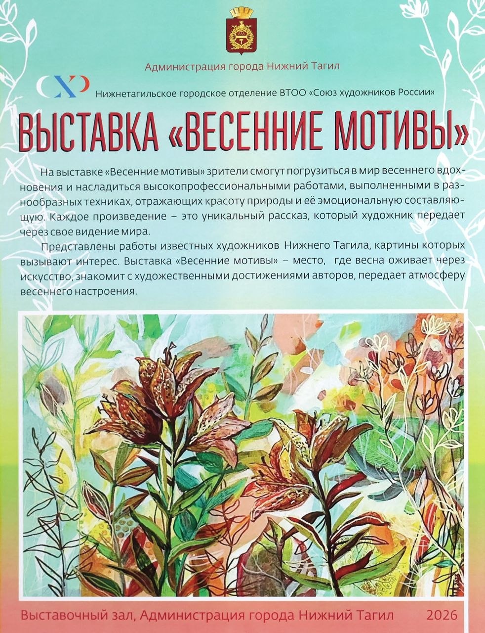 В здании администрации города открылась выставка работ тагильских художников «Весенние мотивы» (12+).