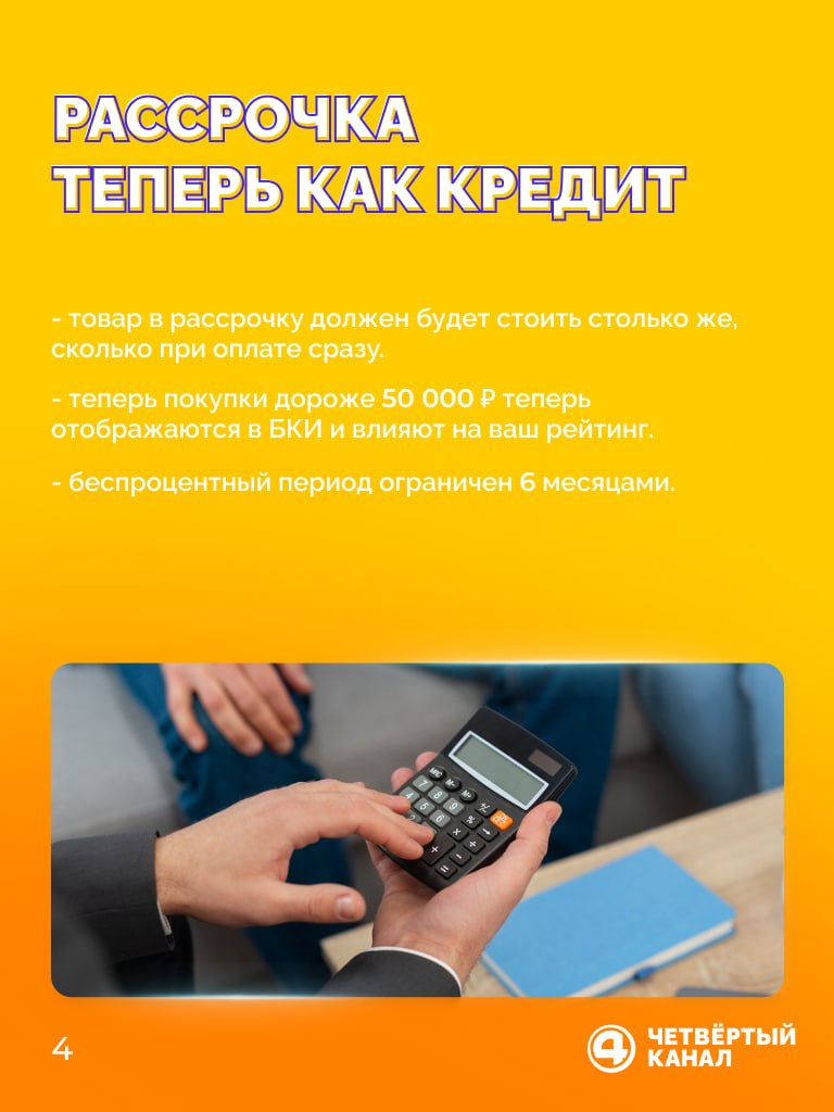 Рассрочка становится почти как кредит. Покупки дороже 50 тысяч рублей будут попадать в кредитную историю, а «беспроцентный» период ограничат шестью месяцами.
