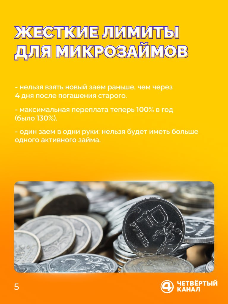 Для микрозаймов вводят жёсткие ограничения. Новый займ нельзя взять раньше чем через 4 дня после погашения старого, а максимальная переплата снижается до 100% в год.