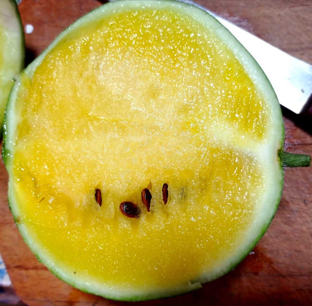 Когда арбуз, наконец, вызрел, маленькая садоводка была в восторге. Это оказался гибрид 'Шампань', сочный и сладкий, а его долгожданную половину она не могла дождаться, чтобы попробовать. Проверка на сладость обнаружила 189 по TDS-метру — результат, который приятно удивил. Германие об успехах в выведении арбуза вдохновляет и на будущие эксперименты!