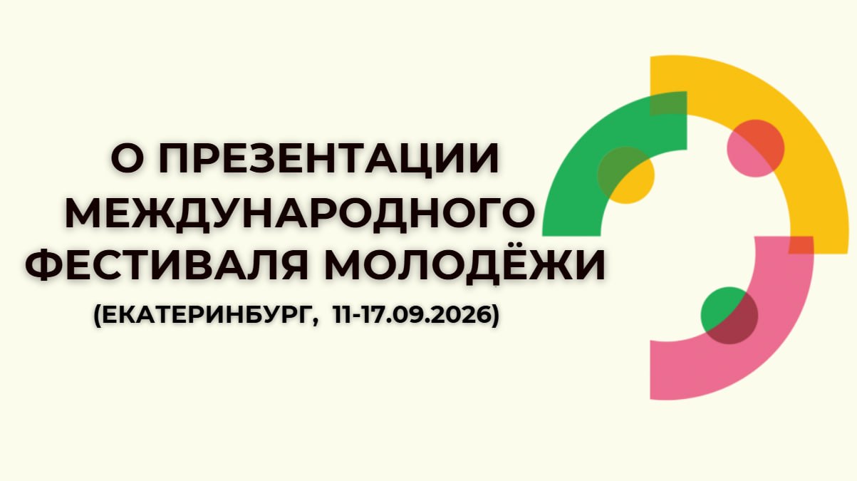 9 апреля в Особняке МИД России (ул.Спиридоновка, 17) состоится презентация Международного фестиваля молодёжи, который пройдет в Екатеринбурге 11-17 сентября 2026 года.