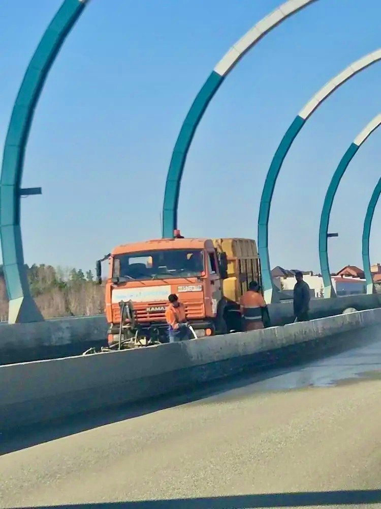 Доброе утро! Весенние работы дорожников — мойка моста.Мой канал в МАХ