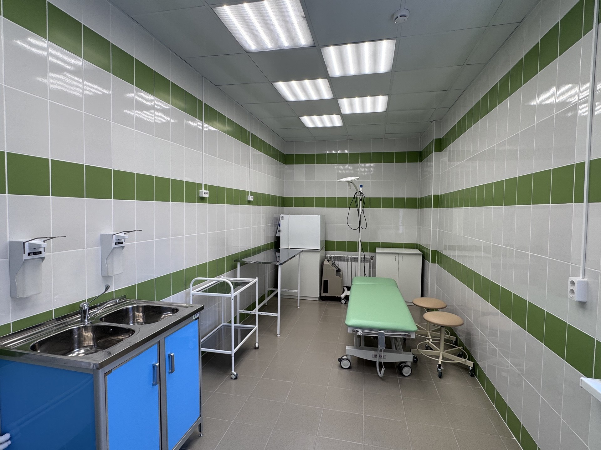 В травмпункте оборудованы рентген-кабинет, две перевязочных, гипсовая, кабинеты для первичного и повторного приемов, комната персонала, санузел для маломобильных пациентов. Ремонт выполнен с учетом принципов бережливого производства: потоки пациентов разделены, оборудована просторная и уютная зона ожидания.