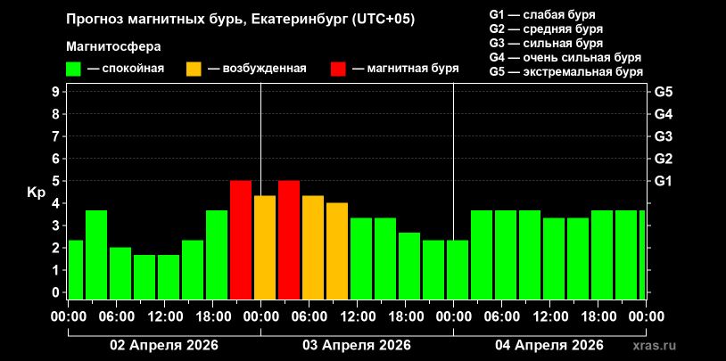 Она должна начаться уже сегодня вечером 2 апреля и прекратится ко второй половине дня. К счастью, буря будет слабой, первого уровня — G1.