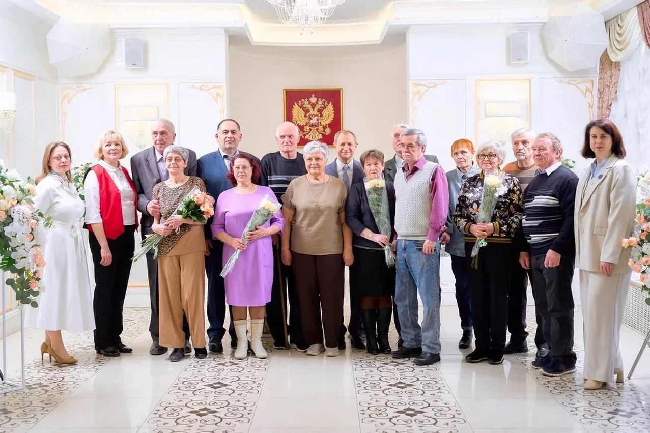 В отделах ЗАГС Екатеринбурга прошло вручение региональных знаков отличия «Совет да любовь» супружеским парам, прожившим в браке более 50 лет. Всего награды получили 14 пар юбиляров семейной жизни