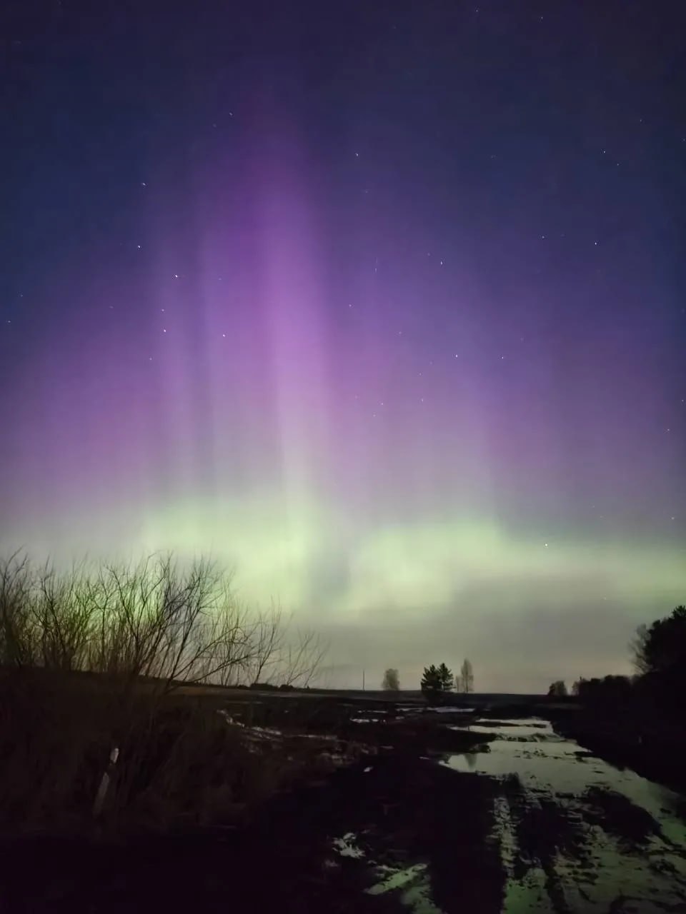 Северное сияние озарило небо над Свердловской областью