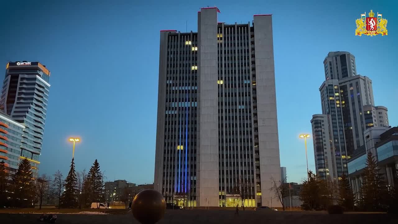 Красивая синяя подсветка зажглась на улицах и зданиях уральской столицы.