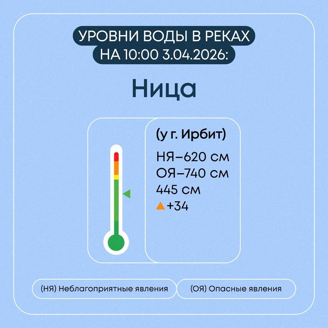 – В Байкаловском районе за последние сутки уровень воды в реке Ница снизился на 12 см. и находится в пределах нормы. Временно закрыто движение по мостам у сел Елань и Городище. В результате временно ограничен проезд к деревням Яр, Боровикова и Красный Бор.