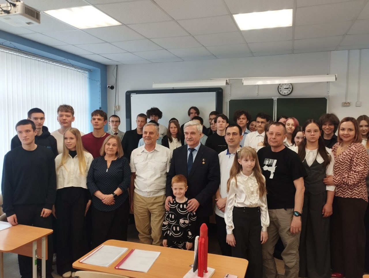 На площадке школы №22 в поселке Билимбай Свердловской области прошла встреча с Героем России, летчиком-космонавтом Александром Калери. Участие в мероприятии приняли школьники и их родители