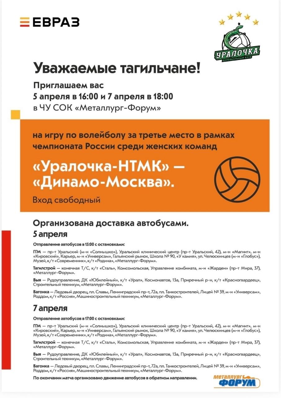 7 апреля в 18-00 в Металлург-Форуме состоится матч «Уралочка-НТМК» - «Динамо-Москва».