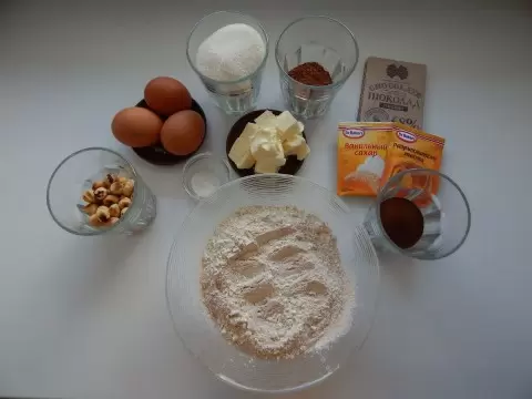 Прежде всего, важно подготовить все ингредиенты. В глубокой миске нужно смешать просеянную муку, какао-порошок, соль и ванильный сахар, оставив их в стороне. В другой ёмкости взбить две яйца и желток, добавить растворимый кофе, постепенно перемешивая до получения однородной массы. Затем к яичной смеси добавить растертое масло и оставшийся сахар, тщательно перемешать, чтобы достигнуть однородности.