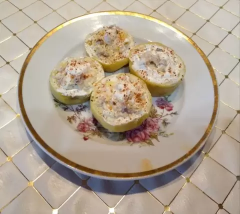 Для заправки сметану соединяют с горчицей, добавляют паприку и черный перец, перемешивают до однородной массы. Затем в смесь вливается лимонный сок и все снова тщательно перемешивается.