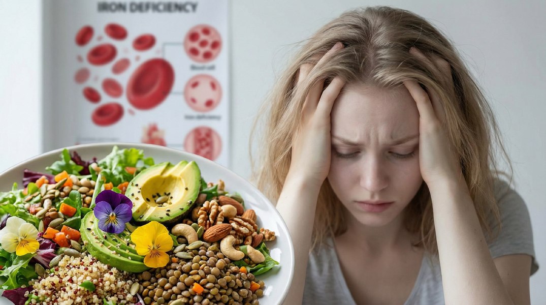 — Исключение мяса и рыбы дефицит железа (особенно у женщин). Негемовое железо из растений усваивается хуже, чем из мяса, а фитаты в зерновых и бобовых мешают его всасыванию.