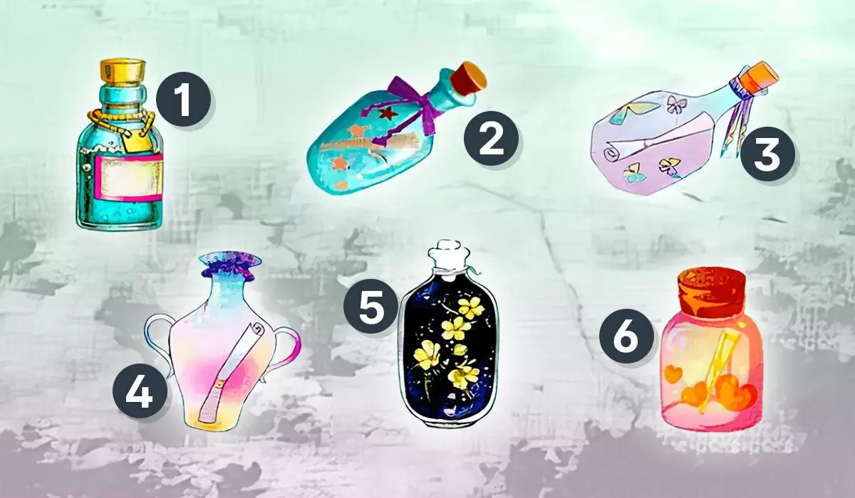 Посмотрите на изображение и интуитивно выберите бутылку с посланием, не раздумывая слишком долго. Здесь нет правильных или неправильных ответов, полагайтесь исключительно на ваше внутреннее чутье.