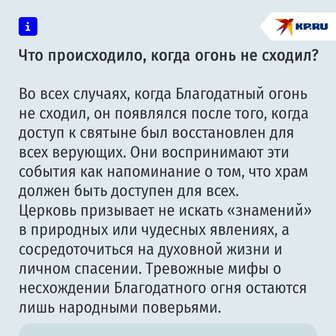 В истории фиксируют три случая, когда Благодатный огонь не сходил: