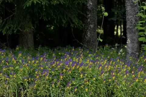Марьянник дубравный (Melampyrum nemorosum) — мастер оптических иллюзий. Его эффектный двухцветный вид является результатом удивительной эволюционной стратегии. Несмотря на то, что настоящие цветки невыразительны и мелки, верхние листья окрашены в яркие фиолетовые и синие оттенки, заставляя нас видеть их как часть цветка. Это называется «псевдантий» — ложный цветок, и марьянник не единственный, кто его использует. Тем не менее, данный вид идёт дальше, создавая иллюзии на уровне различных органов растения.