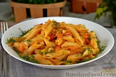- Макароны с овощным соусом: Это блюдо, состоящее из простых макарон и свежих овощей, станет изюминкой вашего стола. Овощи обжариваются до золотистой корочки и тушатся с молоком, придавая соусу сливочный вкус. Макароны смешиваются с соусом и прогреваются, раскрывая весь аромат комбинации.