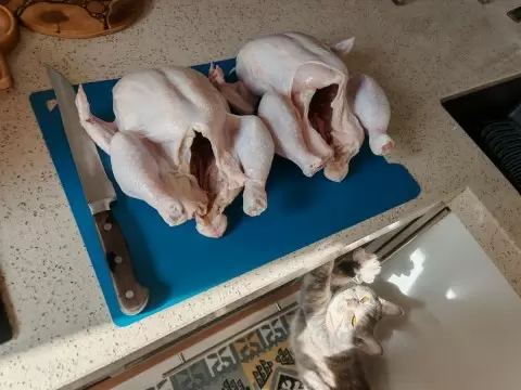 Перед тем как приступить к разделке курицы, ее необходимо тщательно промыть и высушить. После этого курицу разделяют: отрезают крылья, ноги и, при желании, готовят филе. Все части, кроме костей, можно использовать в будущем для супов или других блюд.