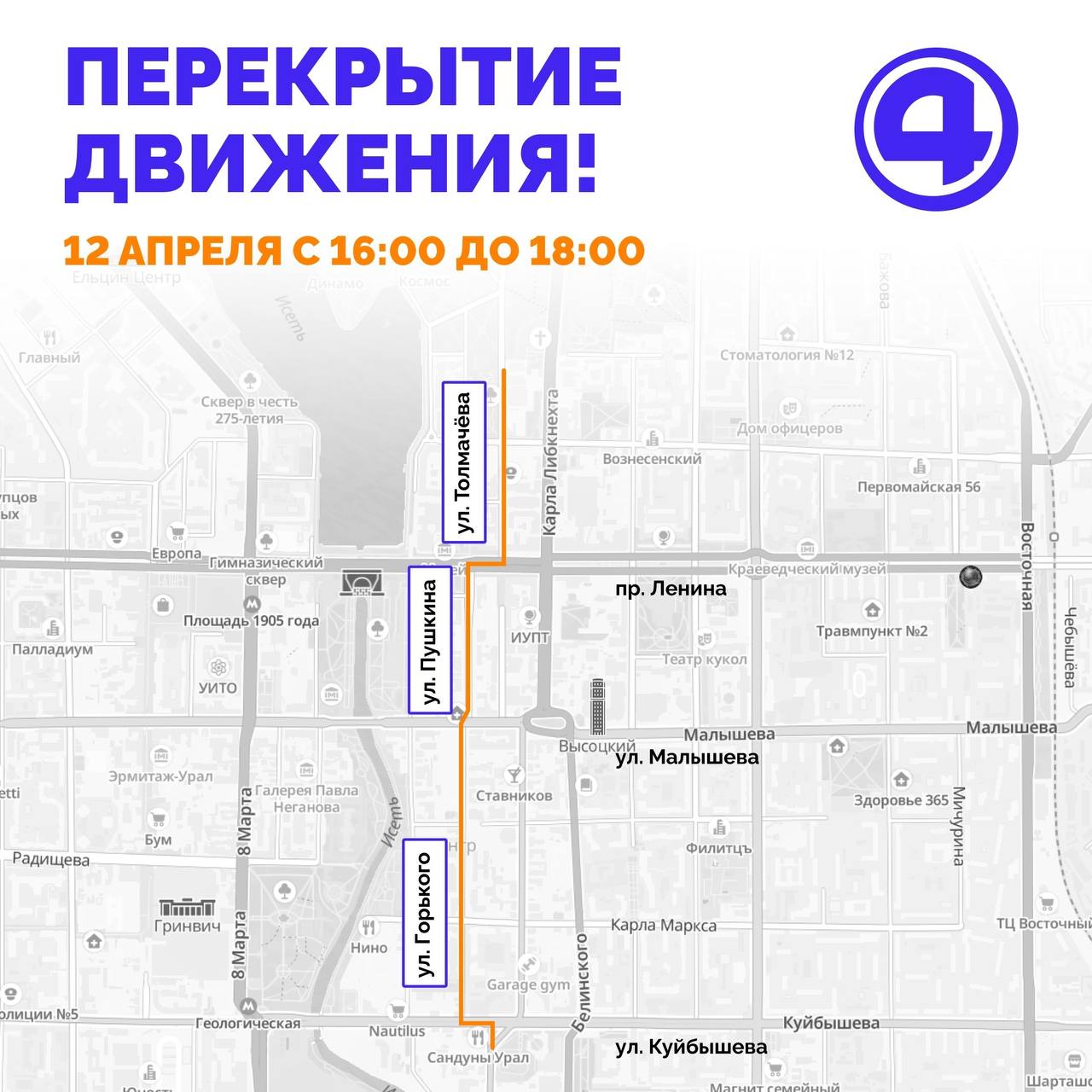 Движение транспорта будет ограничено с 16:00 до 18:00. Планируйте маршрут заранее и предупредите знакомых!