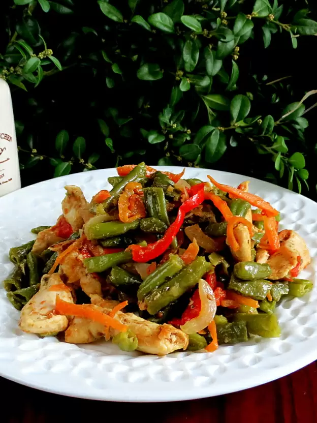 Легкость, питательность и изысканный вкус – именно так можно охарактеризовать это блюдо из курицы с фасолью и разнообразными овощами. Яркая цветовая палитра отдельных ингредиентов украшает стол, а процесс приготовления не займет много времени, что делает его идеальным выбором как для семейного ужина, так и для быстрого обеденного перекуса в будний день. Аромат чеснока и легкая кислинка томатной пасты отменным образом дополняют свежие овощи, и даже те, кто не любит фасоль, смогут порадоваться этому страву.