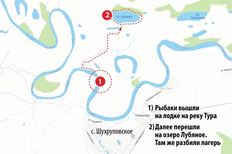 10 апреля Максим Миронов (28 лет), его отец, Алексей Миронов (64 года) и друг семьи, Виталий Шестаков (65 лет) отправились на рыбалку в селе Шухроповское Туринского района. Известно, что компания переплыла реку Тура на лодке, после чего они пешком дошли до одного из озер. В этом же месте они остались на ночлег.