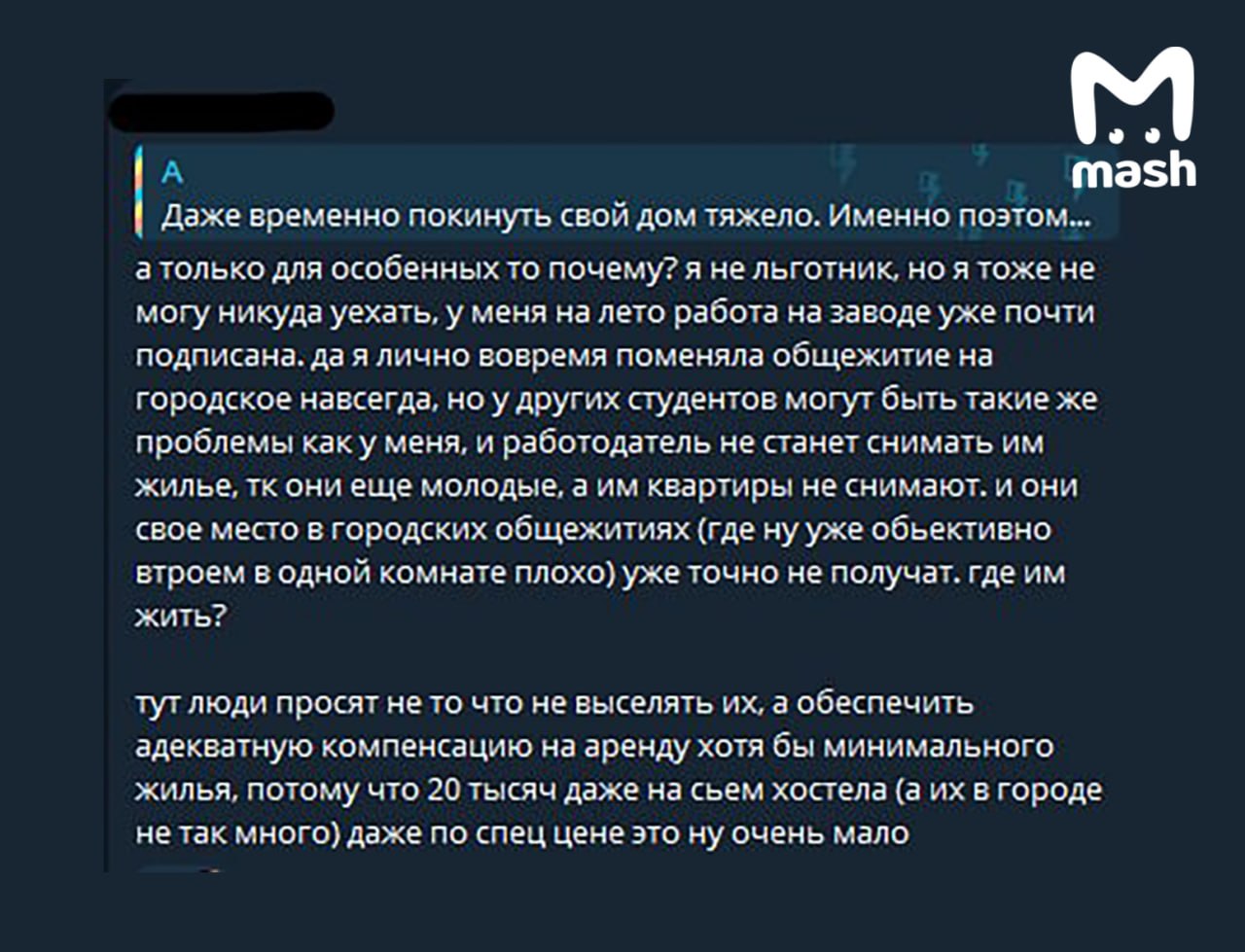 Вуз предлагает компенсацию — 20к рублей за три месяца, но аренда даже самой простой однушки в Екб стоит от 30к в месяц. Снять жильё на короткий срок почти невозможно — собственники требуют минимум полгода. Помочь готовы не всем: альтернативное жильё или полную компенсацию дадут только льготникам и студенческим семьям. Остальным предлагают искать выход самостоятельно.