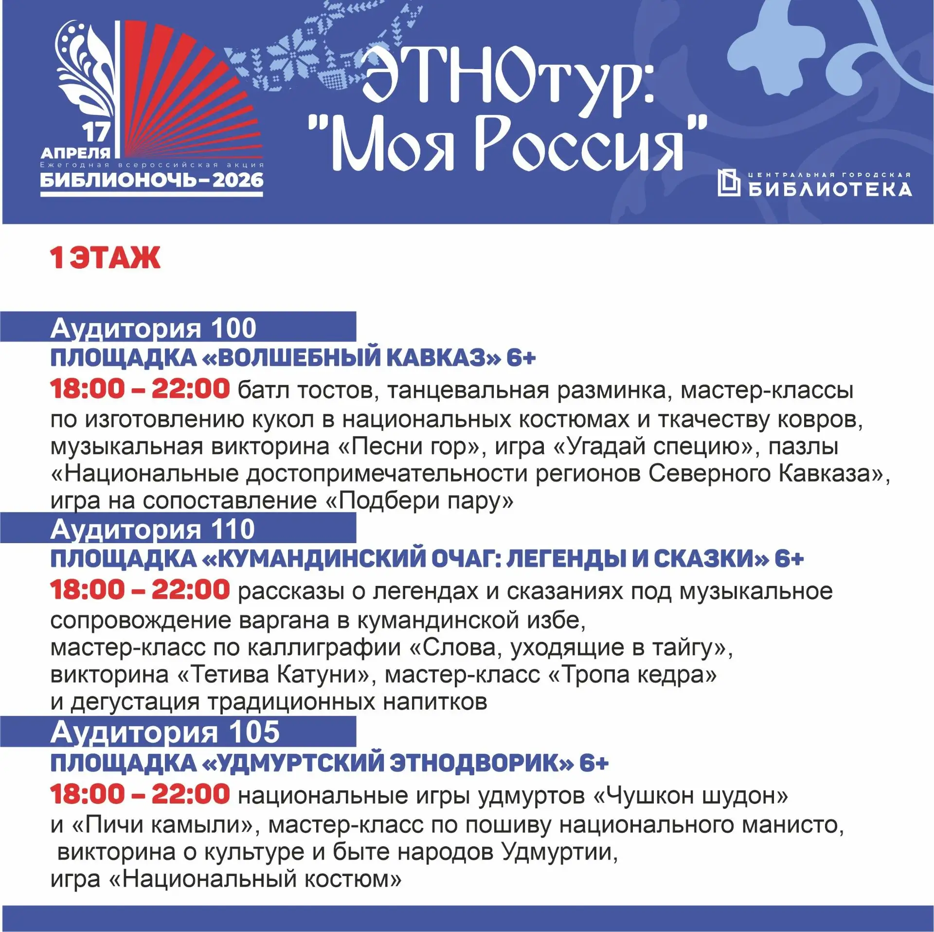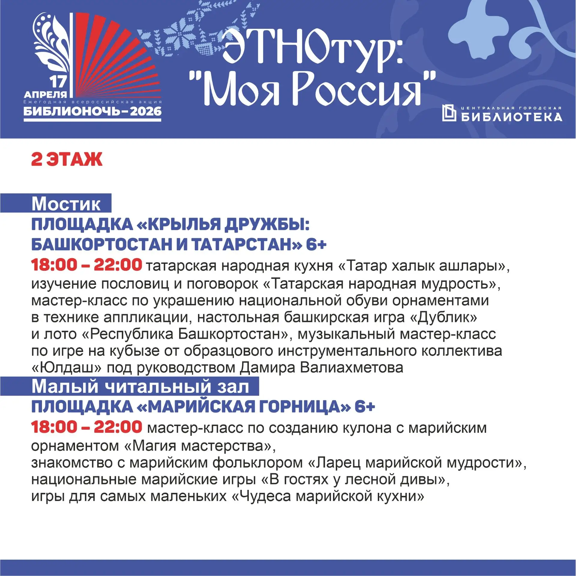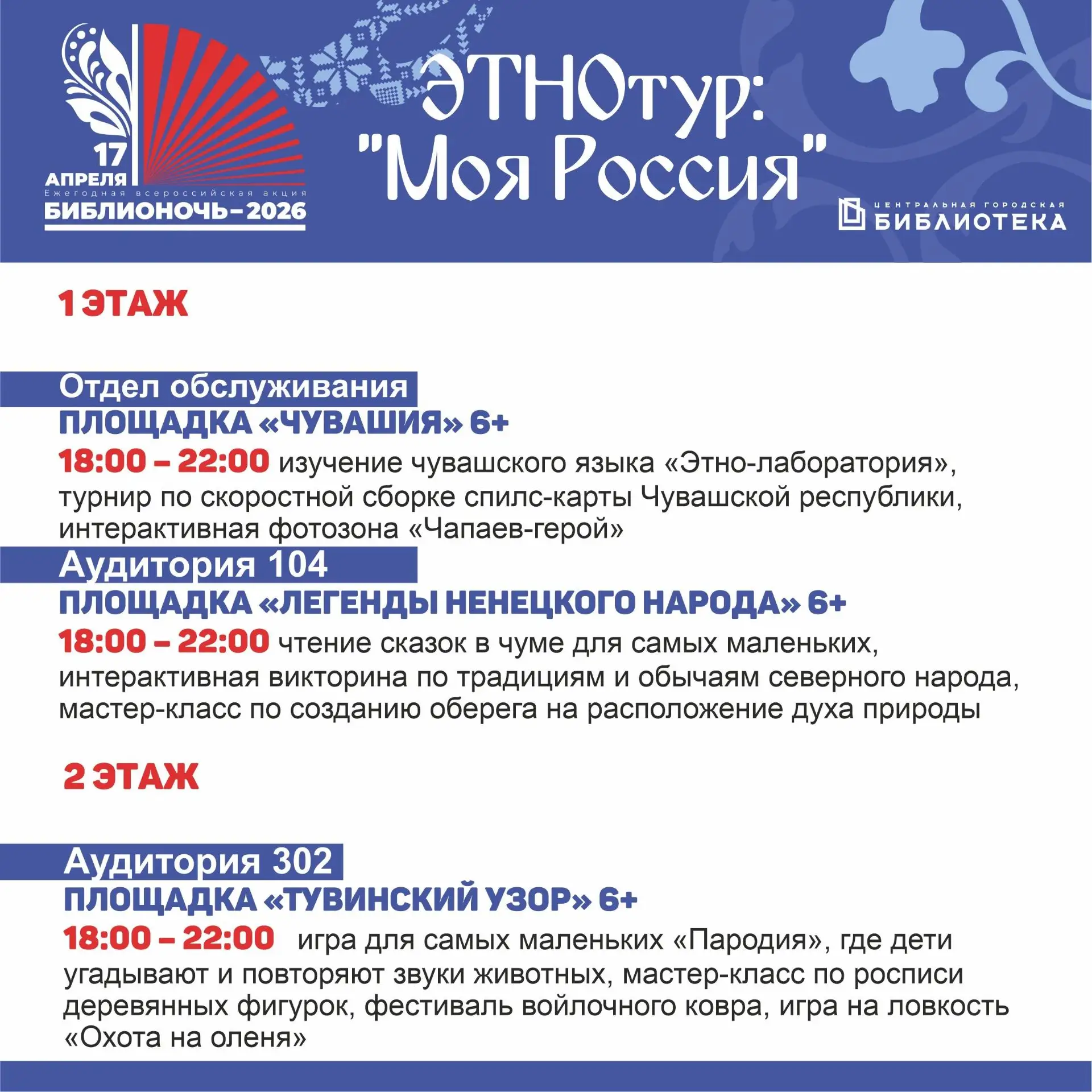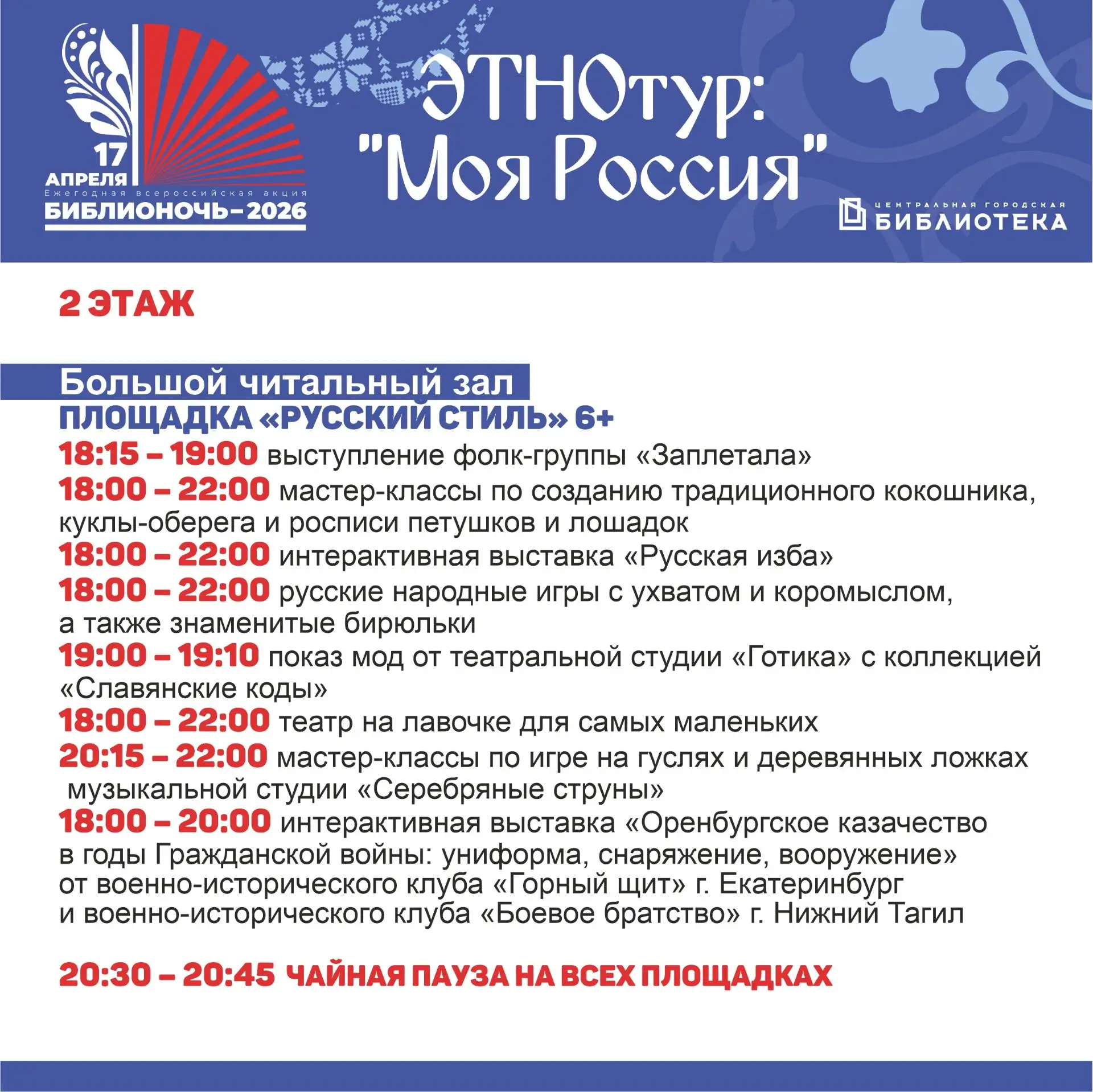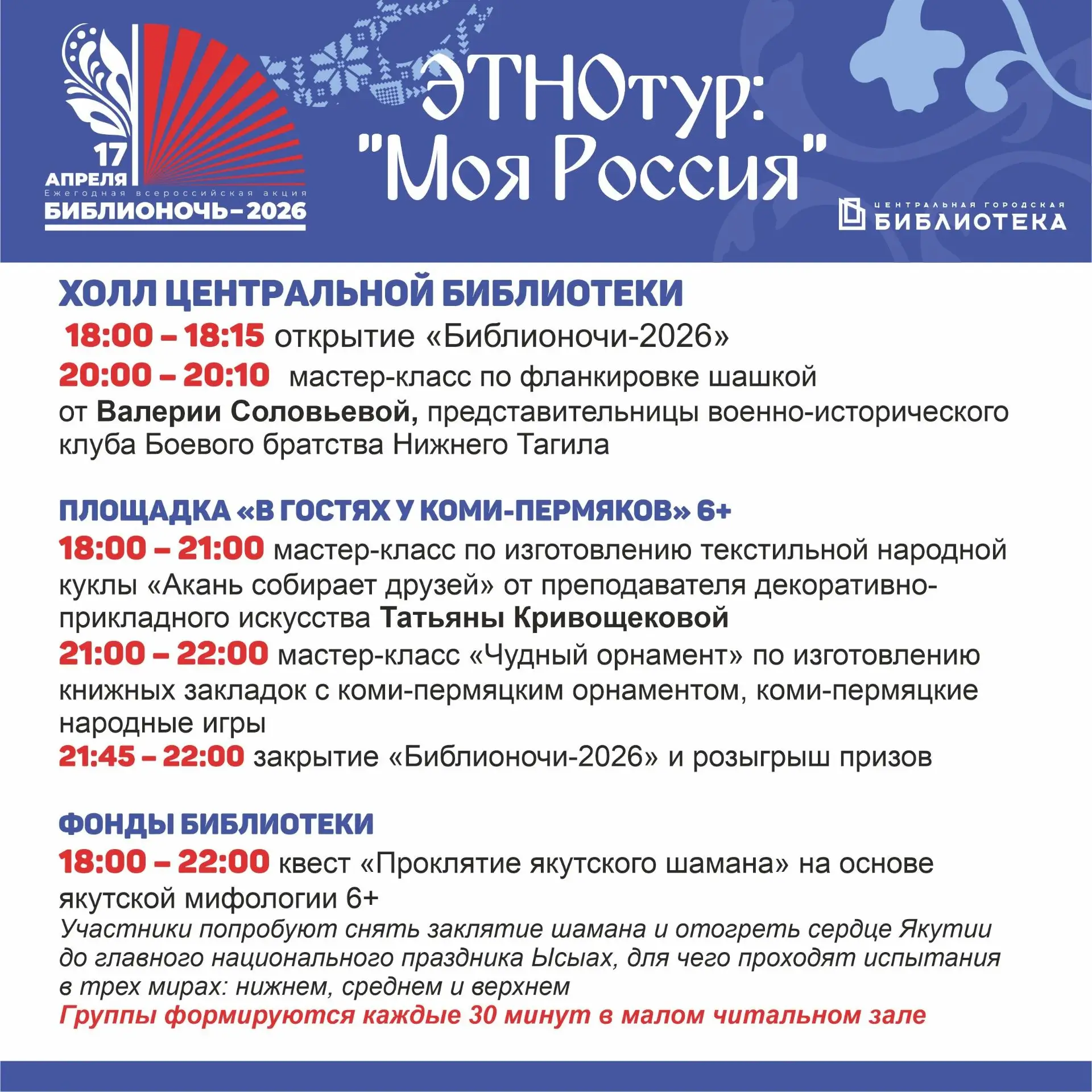 Напоминаем, что уже сегодня в Нижнем Тагиле пройдет Всероссийская акция - Библионочь-2026: ЭТНОтур «Моя Россия»