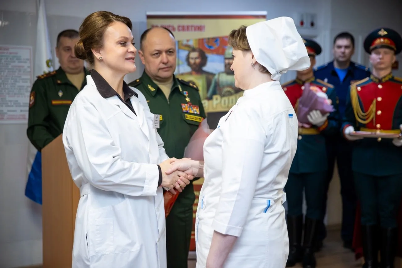 Начальник госпиталя полковник медицинской службы Сергей Яшин доложил о лечении раненых военнослужащих. Пообщалась с бойцами, проходящими лечение, и медиками, которые проявляют заботу, спасают жизни и помогают восстановить здоровье ребятам. Отличившимся при выполнении задач специальной военной операции вручила ведомственные награды.