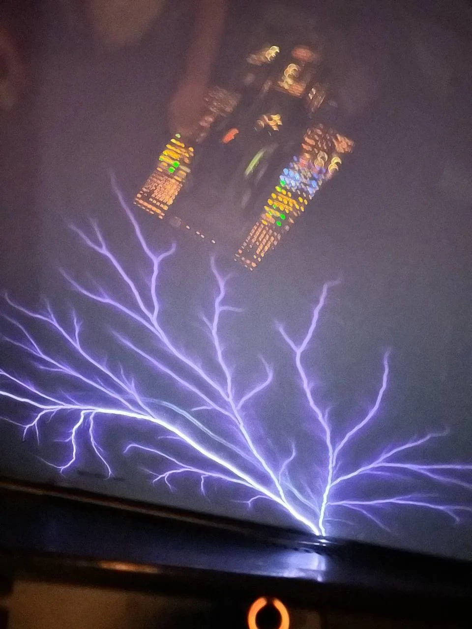 Как рассказали в авиакомпании, эти светящиеся пучки на носу самолёта - коронный электрический разряд. Он возникает, когда атмосфера наэлектризована до предела: во время грозы, бури или урагана - чаще всего в тёплое время года.