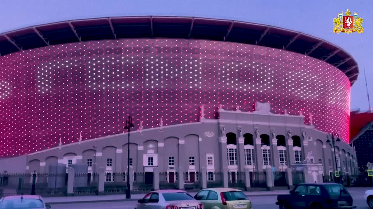 Накануне вечером яркая подсветка была включена на спортивных комплексах «Екатеринбург Арена» и «УГМК-Арена», а также на выставочном центре «Екатеринбург-ЭКСПО».