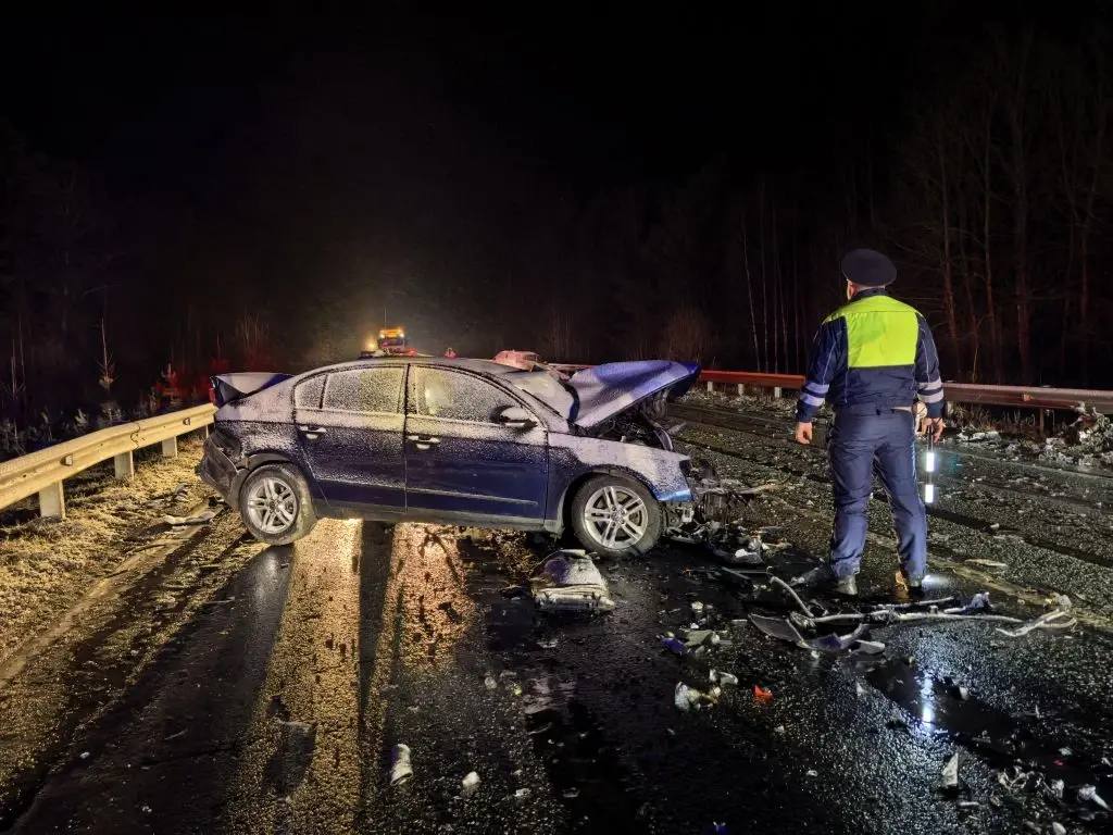 Авария случилась на трассе Екатеринбург — Нижний Тагил — Серов. Водитель LADA XRAY на летних шинах не учёл состояние дороги (шёл снег с дождём, температура около нуля), вылетел на встречку и врезался в Volkswagen Passat. Травмы получили оба водителя и пассажир иномарки.