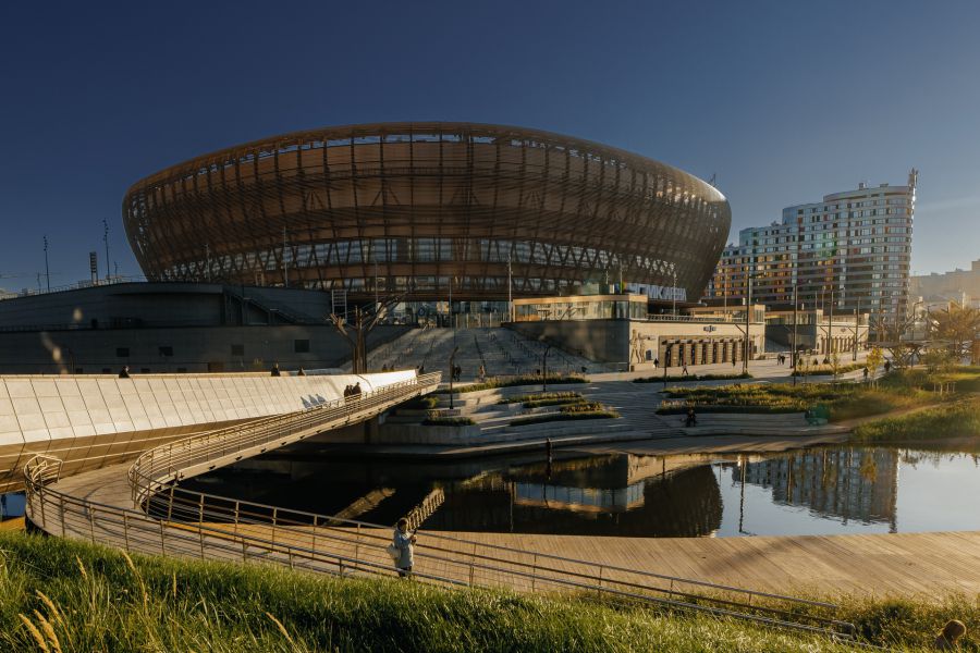 Вокруг «УГМК Арены» для отдыха создано комфортное общественное пространство: обустроена набережная, установлен дополнительный пешеходный мост через реку Исеть по улице Народной Воли, реконструирована улица Степана Разина вблизи объекта.