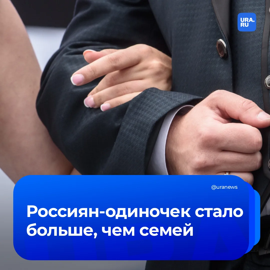 Россияне все реже вступают в брак. По апрельским данным, на каждые 10 семей приходится восемь разводов, сообщила екатеринбургский психолог Баранская. На этом фоне люди чаще выбирают жить в одиночестве. Из всего населения страны такой образ жизни ведет 41,8% (27,6 млн человек).