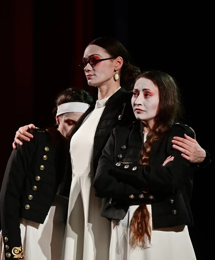 Те, кто не видел анонсирующих материалов к спектаклю, уверены, были немного шокированы образом главных героинь: набеленные до мертвецкого отсвета лица, подведенные алыми тенями болезненные глаза. Режиссер и художник поставили сестрам диагноз сразу – они мечтают о счастливой жизни, но не готовы к ней и никогда не решатся.