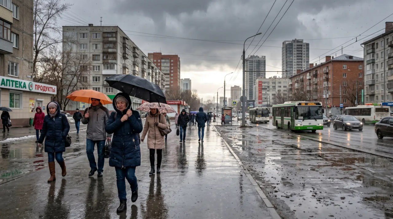 Сегодня в Екатеринбурге облачно, днём +7°. Осадки — дождь, местами с мокрым снегом или крупой. Не ливень, но неприятно. Южный циклон подбирается к Южному Уралу, и южная половина области попадёт под его влияние.