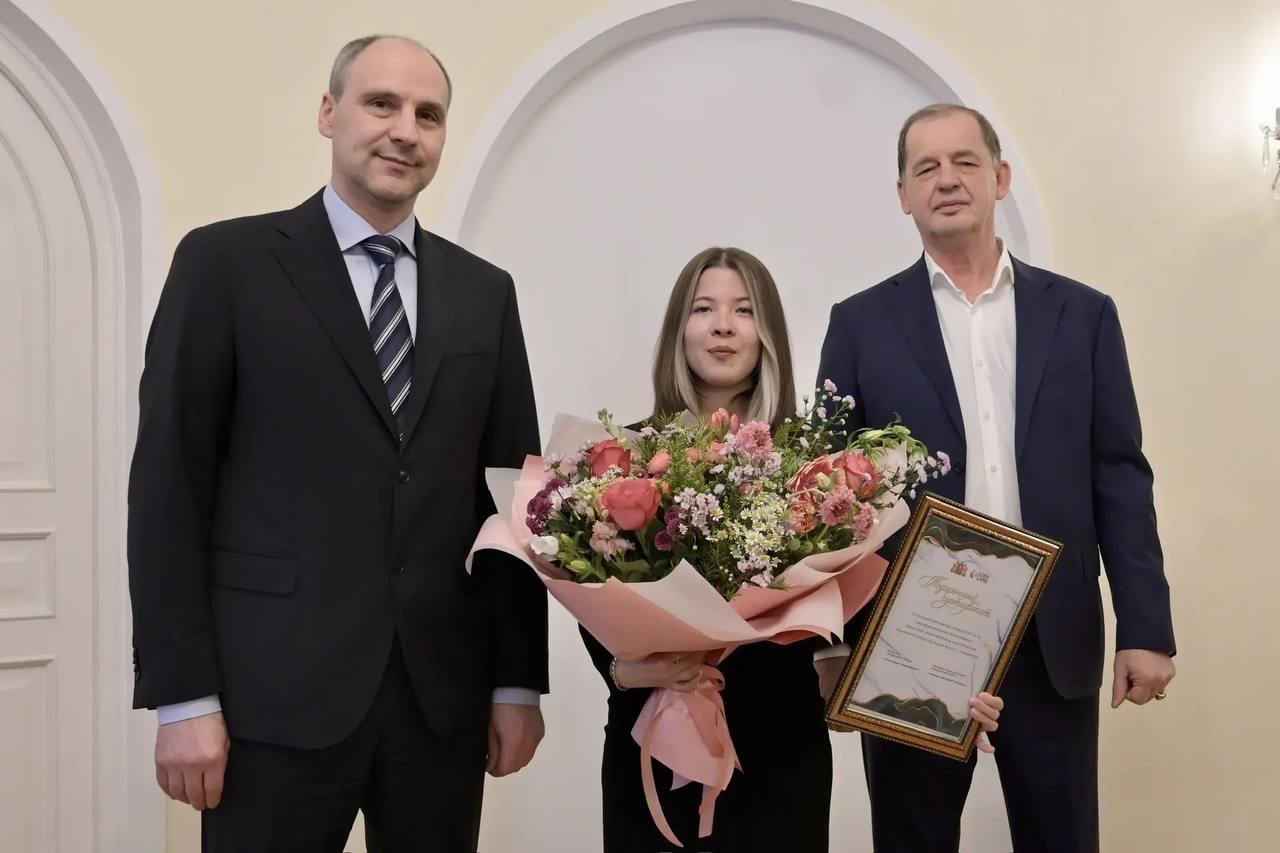 Вместе с президентом Федерации шахмат Свердловской области Андреем Моисеевичем Симановским поздравили талантливую уральскую шахматистку Лею Гарифуллину и вручили ей ключи от новой квартиры.