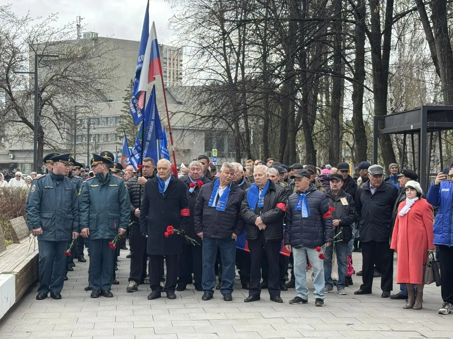 Собравшиеся почтили минутой молчания погибших при ликвидации последствий аварии и возложили цветы к монументу.