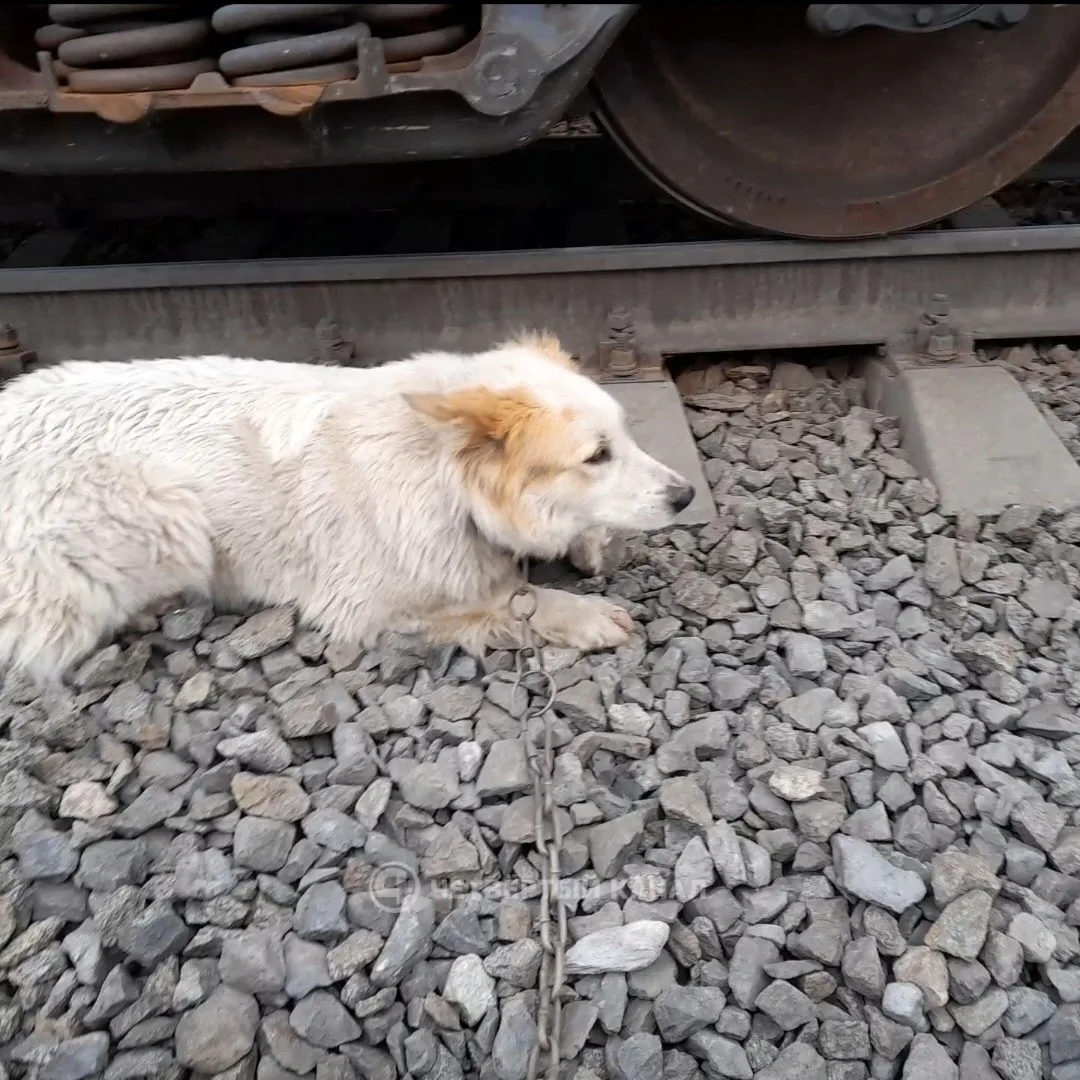 О случившемся зоозащитникам сообщил проезжавший мимо неравнодушный человек. На мосту в посёлке Октябрьский над Челябинским трактом он заметил пса, привязанного цепью прямо к путям, где ходят грузовые поезда.